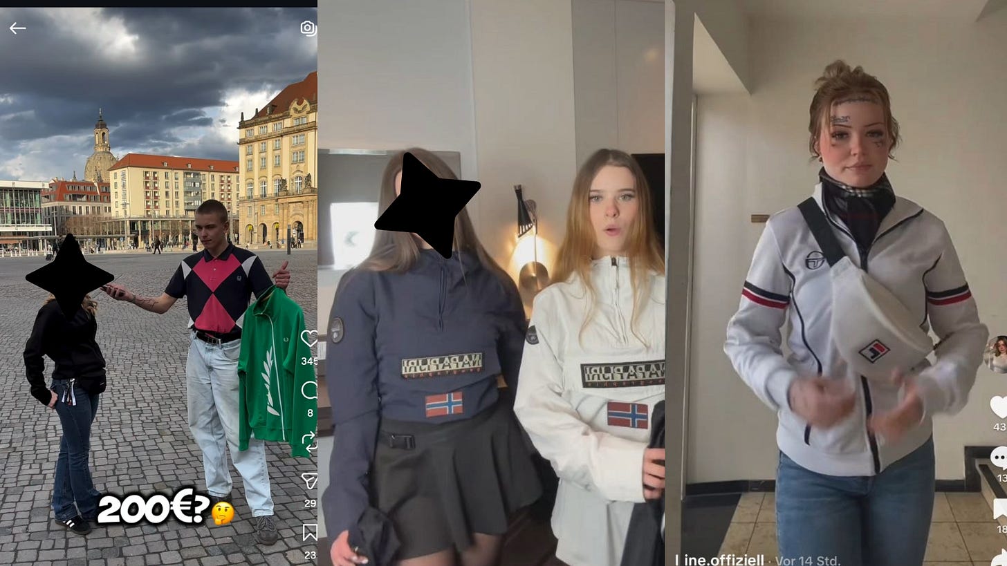 Dass diese digitale Ästhetik auch reale Folgen haben kann, zeigt Lesches Offline-Aktivismus. Klandestin – über Instagram, Telegram und Co. – trommelt er zu „Casual Treffen“ im Raum Dresden zusammen. Offiziell geht es nur um den harmlosen Austausch über Klamotten und Marken. Doch die Realität sieht anders aus: Im Nachgang eines solchen Treffens soll es mutmaßlich zu einem Übergriff gekommen sein, bei dem ein Passant aus einer Straßenbahn gedrängt wurde[37] Quellen, die beim Treffen vor Ort waren, bestätigen uns diese Verbindung.